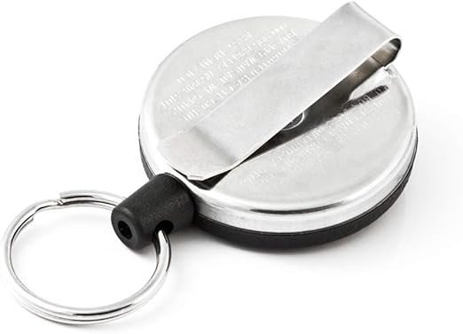 Model s pevným kovovým klipem. Černá barva předního krytu. Retraktor určený pro nejnáročnější podmínky a použití. Díky kovovému řetízku máte jistotu pevného upevnění.